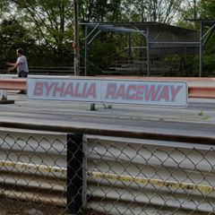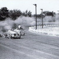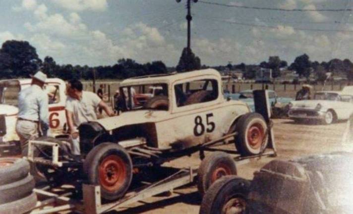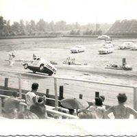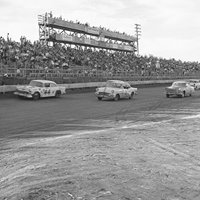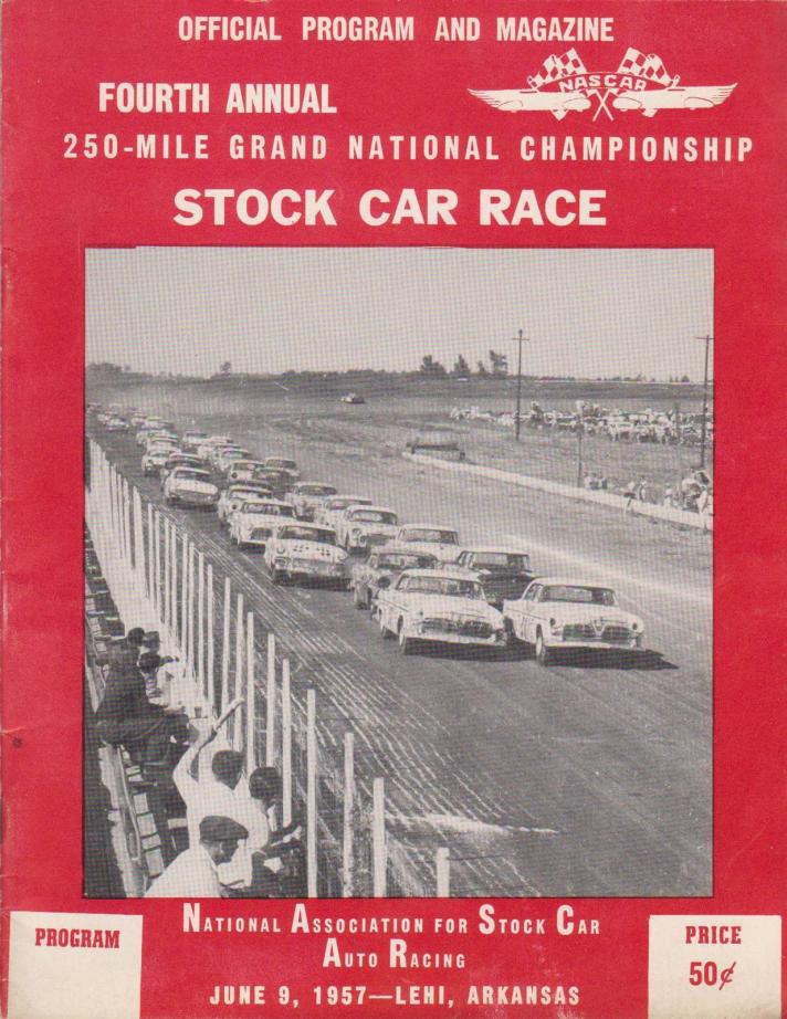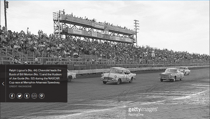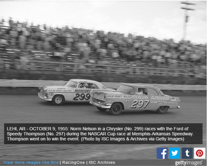 LEHI, AR – OCTOBER 9, 1955: Ralph Ligouri?s (No. 44) Chevrolet leads the Buick of Bill Morton (No. 1) and the Hudson of Joe Guide (No. 52) during the NASCAR Cup race at Memphis-Arkansas Speedway. (Photo by ISC Images & Archives via Getty Images)